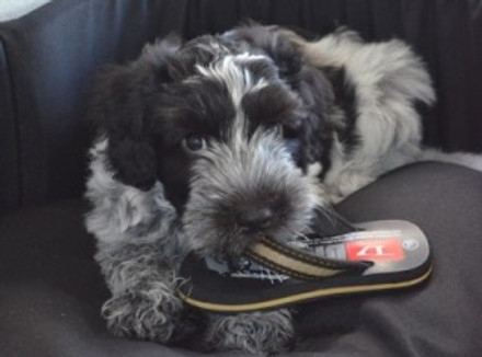 FI dag er hvalpene 12 uger. De er alle hos deres nye familier, faldet godt til og stadig “hvalpe-frække” med lyst til at bide/smage på alt ting og en forkærlighed for fingre, sokker og sko (sko er også gode at sove på, så ved man som hund at der sker noget, når skoen bliver fjernet under hovedet på en). Vi har fået billeder af alle hvalpene, det er fantastisk, hvor der er sket meget på de 12 uger.